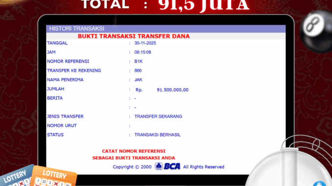 NAGA303 JACKPOT TOGEL DI AMAZON LOTTO 4D Rp 91.500.000,- LUNAS