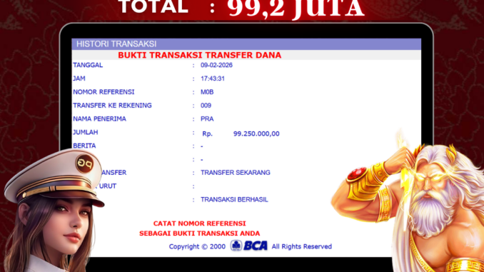NAGA303 mengucapkan selamat kepada user id : PRA*** yang telah berhasil mendapatkan jackpot pada permainan SLOT DI SWEET BONANZA. Kemenangan sebesar Rp 99.250.000,-. telah dibayarkan LUNAS oleh pihak naga303 kepada pemilik user id setelah yang bersangkutan mengisi formulir withdraw. Proses pencairan dana berlangsung sangat cepat hanya dalam waktu 6-11 menit sudah berada dalam rekening pemilik user id. Bukti transfer yang dapat anda lihat adalah bukti SAH / VALID yang langsung di dapatkan melalui bukti transaksi dari Bank yang digunakan untuk pengiriman dana pada rekening pemilik user id. Terima kasih kami sampaikan kepada para pengguna setia naga303 yang telah menggunakan situs kami, sebagai Bandar Terpercaya yang pastinya membayar semua kemenangan member hingga lunas. Apakah Naga303 PENIPU ? Reputasi “NAGA303 TERPERCAYA” sudah sangat melekat. puluhan hingga ratusan ribu pengguna setia NAGA303 tetap menggunakan situs terbesar dan terbaik di Indonesia ini. Hapus rasa was-was dan khawatir anda, kemenangan anda berapapun PASTI dibayarkan hingga lunas.