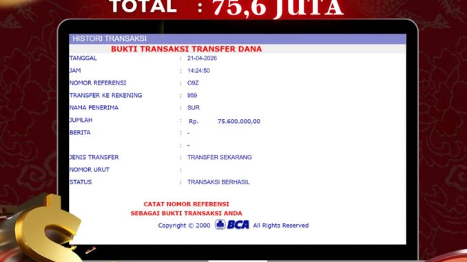 NAGA303 mengucapkan selamat kepada user id : NIN*** yang telah berhasil mendapatkan jackpot pada permainan LIVE CASINO DI DRAGON TIGER . Kemenangan sebesar Rp 75.600.000,-. telah dibayarkan LUNAS oleh pihak naga303 kepada pemilik user id setelah yang bersangkutan mengisi formulir withdraw. Proses pencairan dana berlangsung sangat cepat hanya dalam waktu 6-11 menit sudah berada dalam rekening pemilik user id. Bukti transfer yang dapat anda lihat adalah bukti SAH / VALID yang langsung di dapatkan melalui bukti transaksi dari Bank yang digunakan untuk pengiriman dana pada rekening pemilik user id. Terima kasih kami sampaikan kepada para pengguna setia naga303 yang telah menggunakan situs kami, sebagai Bandar Terpercaya yang pastinya membayar semua kemenangan member hingga lunas. Apakah Naga303 PENIPU ? Reputasi “NAGA303 TERPERCAYA” sudah sangat melekat. puluhan hingga ratusan ribu pengguna setia NAGA303 tetap menggunakan situs terbesar dan terbaik di Indonesia ini. Hapus rasa was-was dan khawatir anda no id casino , kemenangan anda berapapun PASTI dibayarkan hingga lunas.