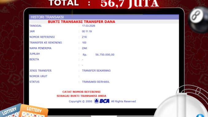 MEMBER NAGA303 MENERIMA PELUNASAN KEMENANGAN JACKPOT TOGEL DI TOTO MACAU 4D Rp 56.700.000,- LUNAS